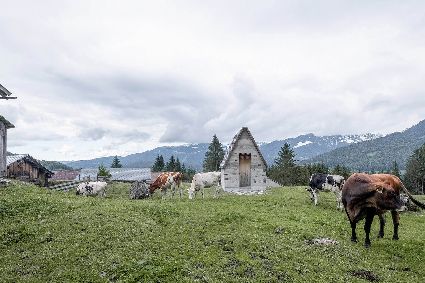 Auf einer Anhöhe über dem Tal der Bregenzer Ach im Gemeindegebiet von Schnepfau liegt unter der steil abfallenden Nordwand der Kanisfluh das Vorsäß Wirmboden.