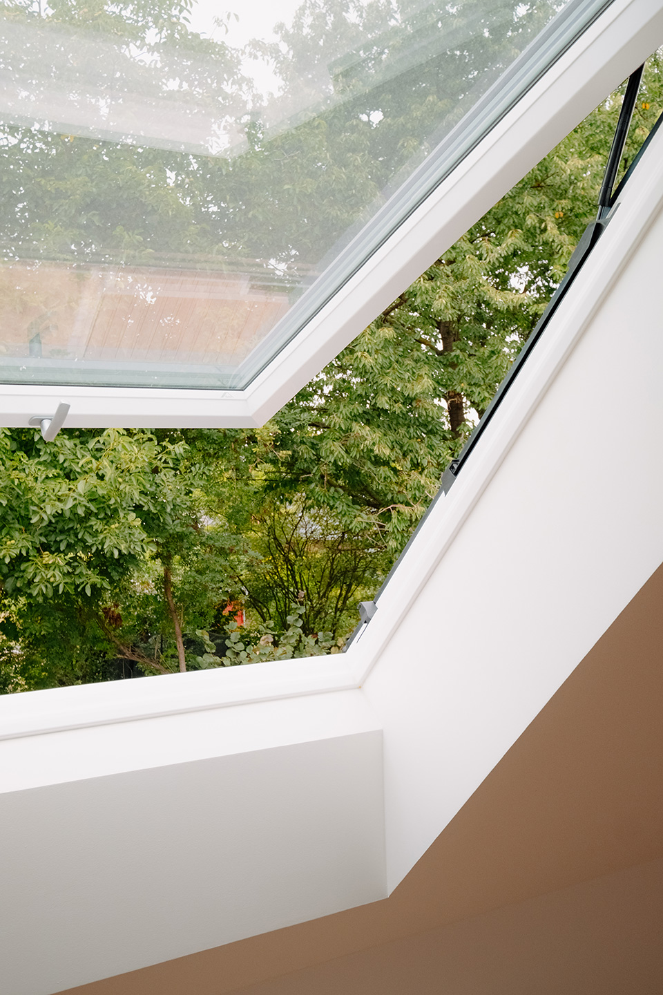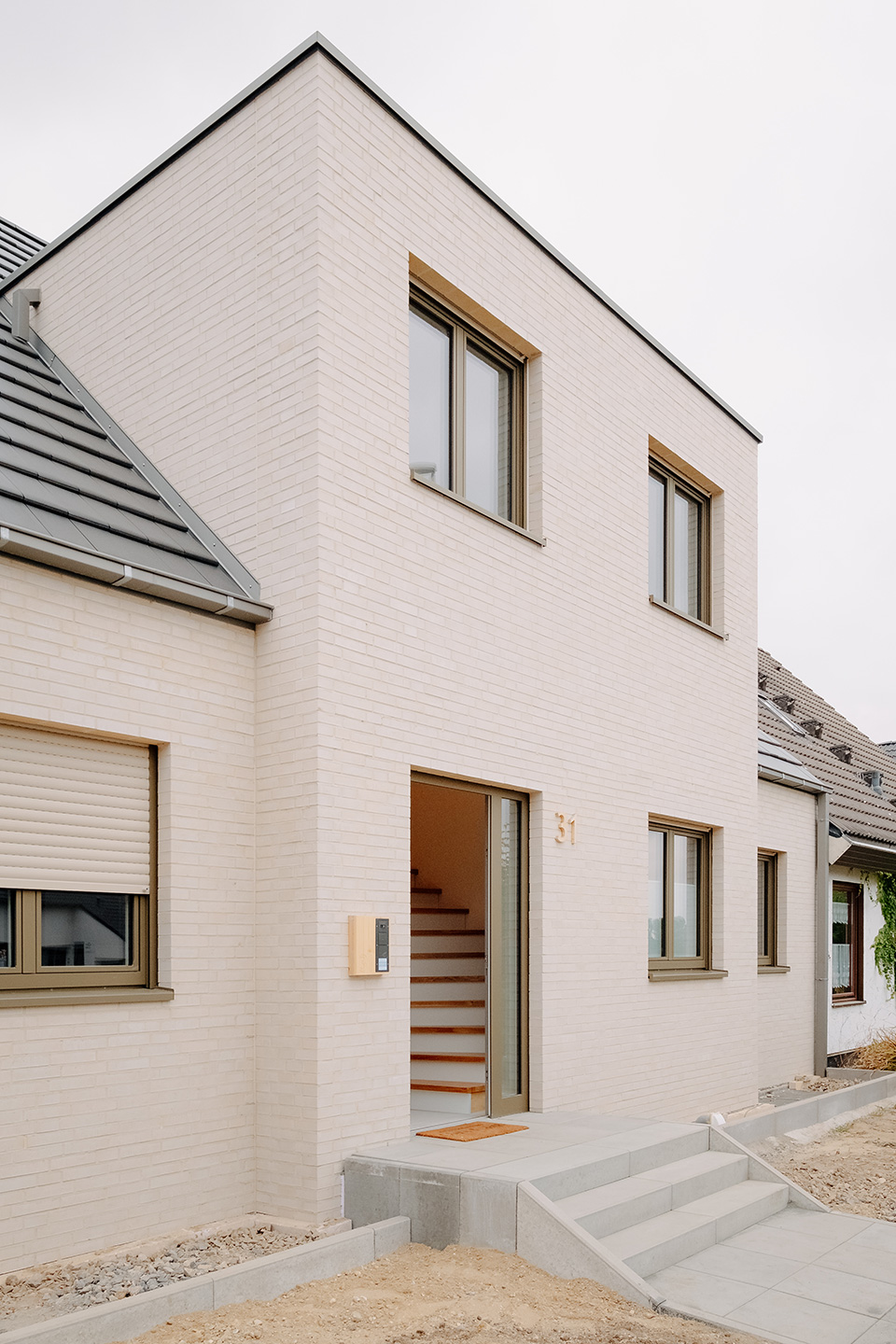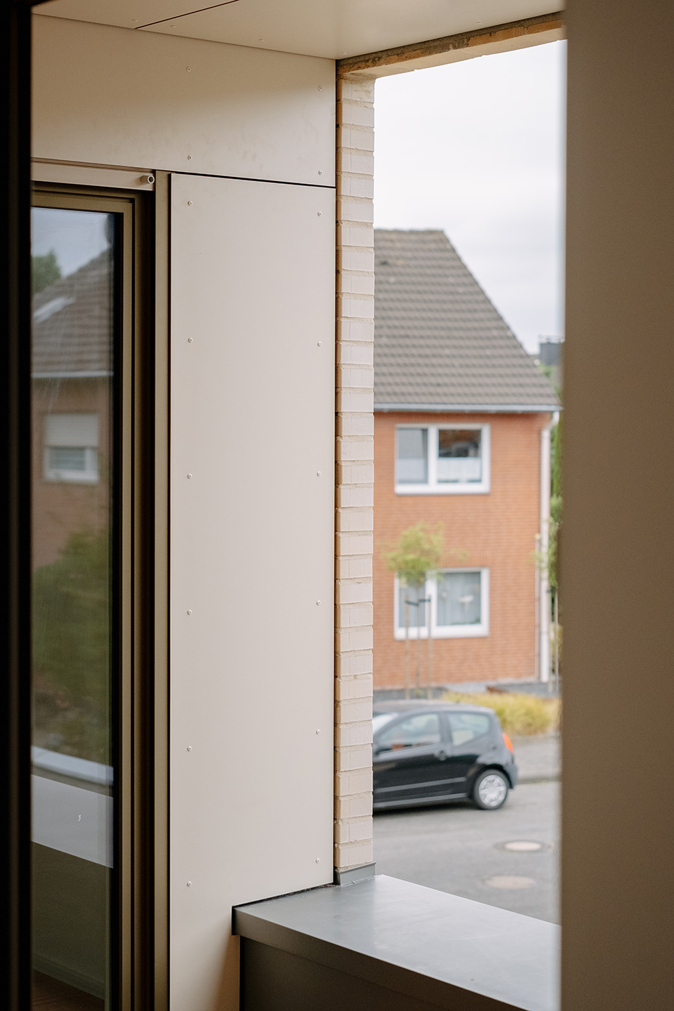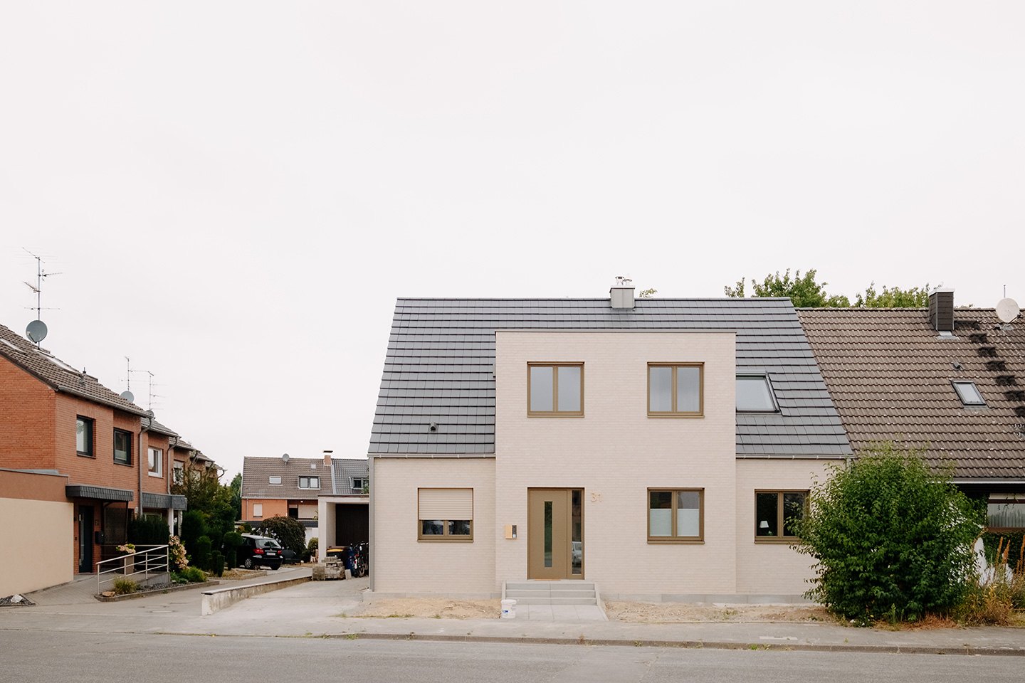 Das Haus Schüller befindet sich in Giesenkirchen, einem östlichen Stadtteil von Mönchengladbach. Auf dem am Feldrand gelegenen, idyllischen Grundstück wurde das Haus 1974 in Holzständerbauweise erbaut. Jedoch ließ die alte Konstruktion eine sinnhafte und nachhaltige Restaurierung nicht zu, da diese zu großen Teilen mit gesundheitsbedenklichen Holzschutzmitteln behandelt wurde. Der aufgesetzte Neubau wurde deshalb in Massivholzkonstruktion aus Brettsperrholzelementen für Wände und Decken, sowie Brettschichtholzbauteile für Stützen, Unterzüge und Dachstuhl errichtet.