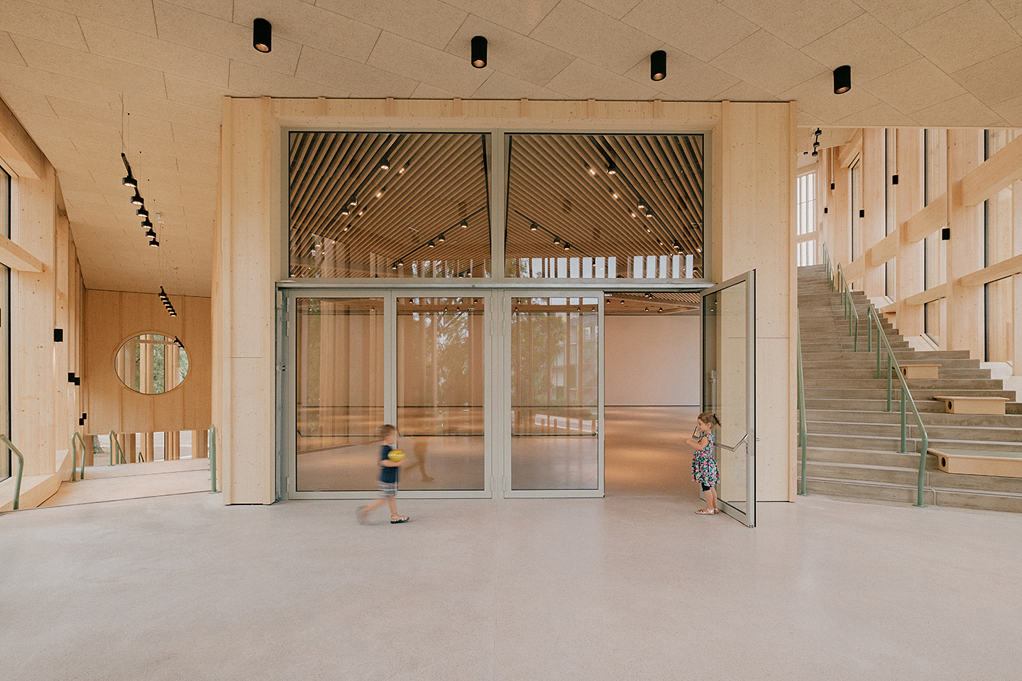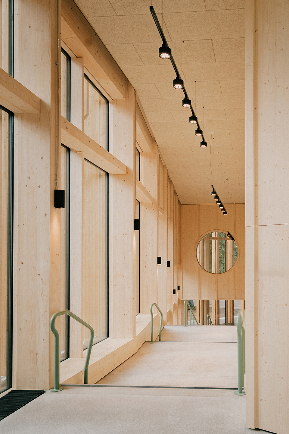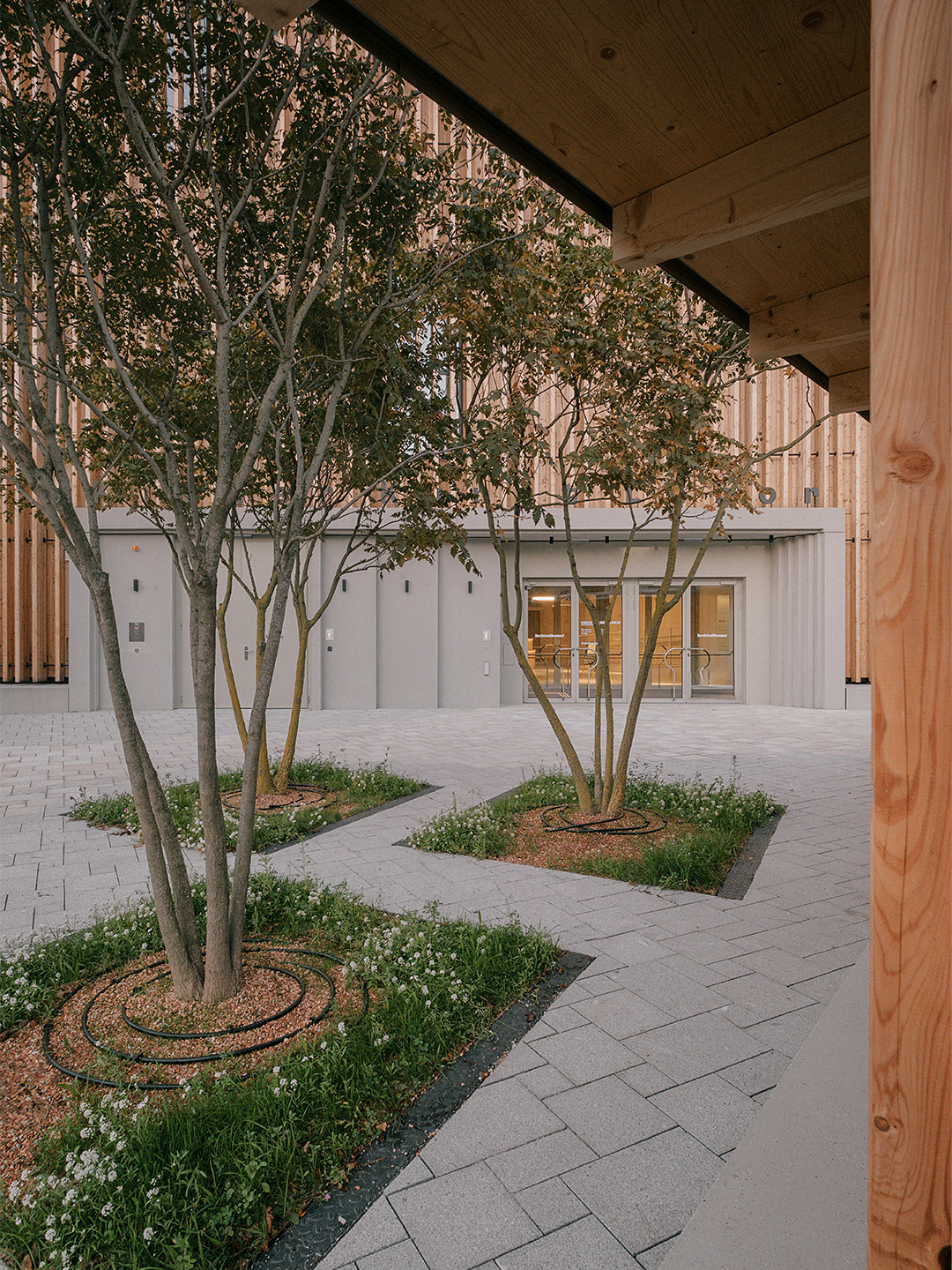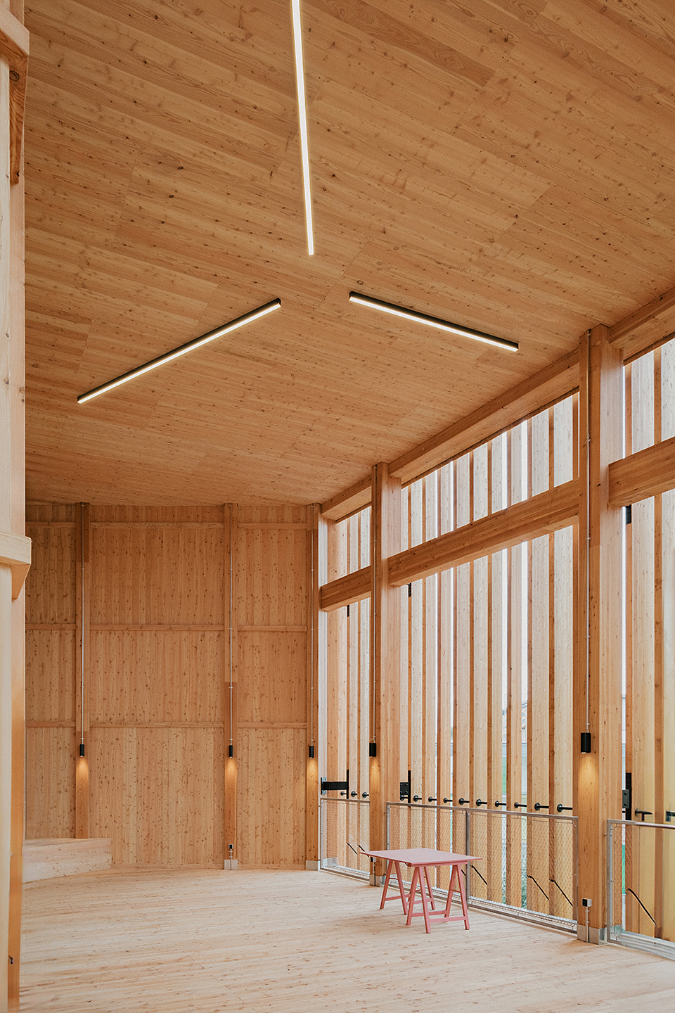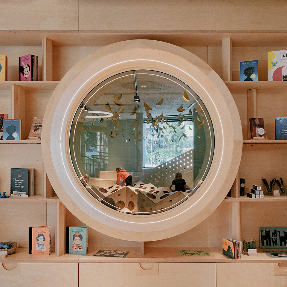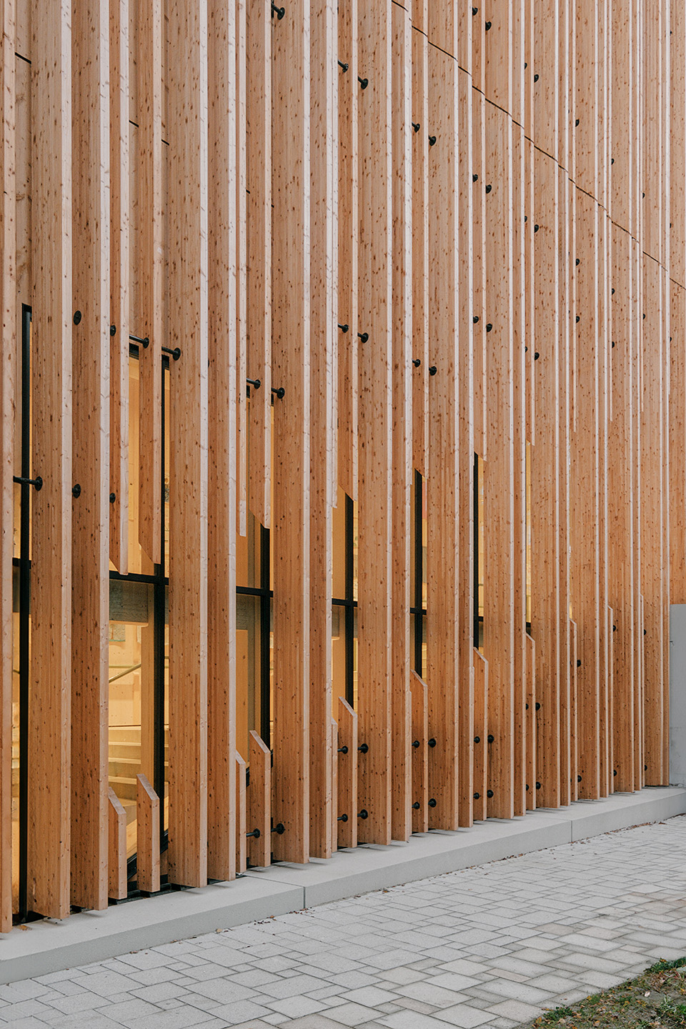 "Das Gebäude im Altoonapark agiert mit seiner prägnanten Form als Landmark auf dem Weg von der Altstadt zum Kulturbezirk in St. Pölten. Das Holztragwerk verleiht dem Bau Leichtigkeit und Offenheit." Schenker Salvi Weber