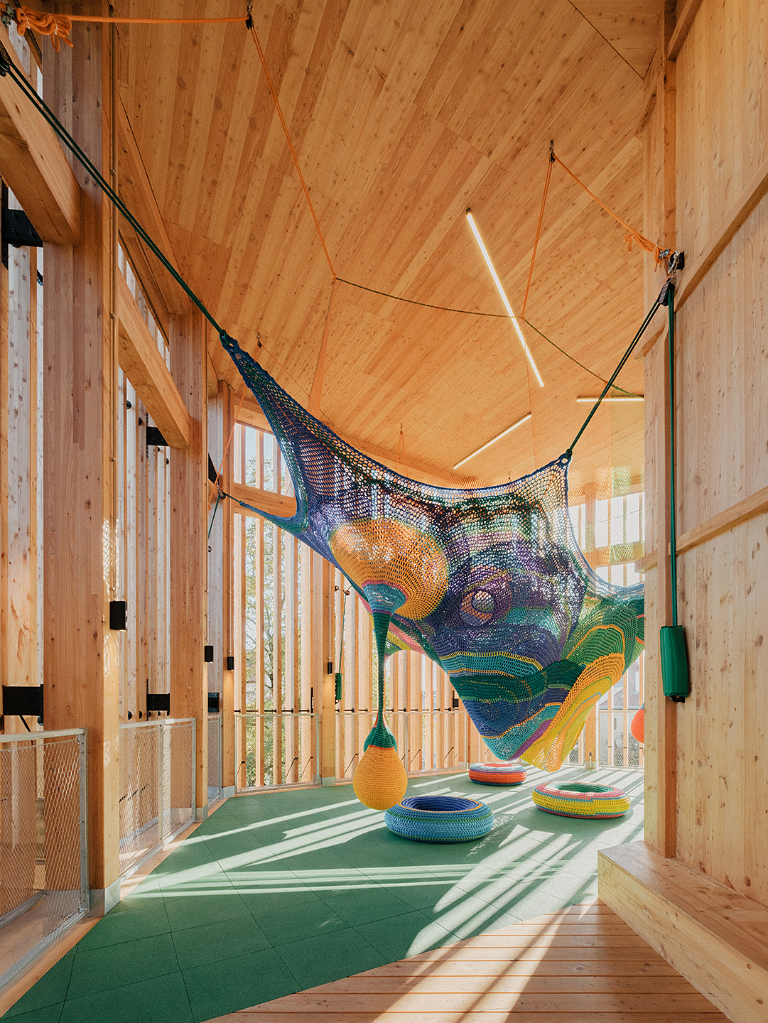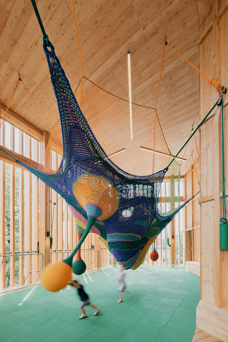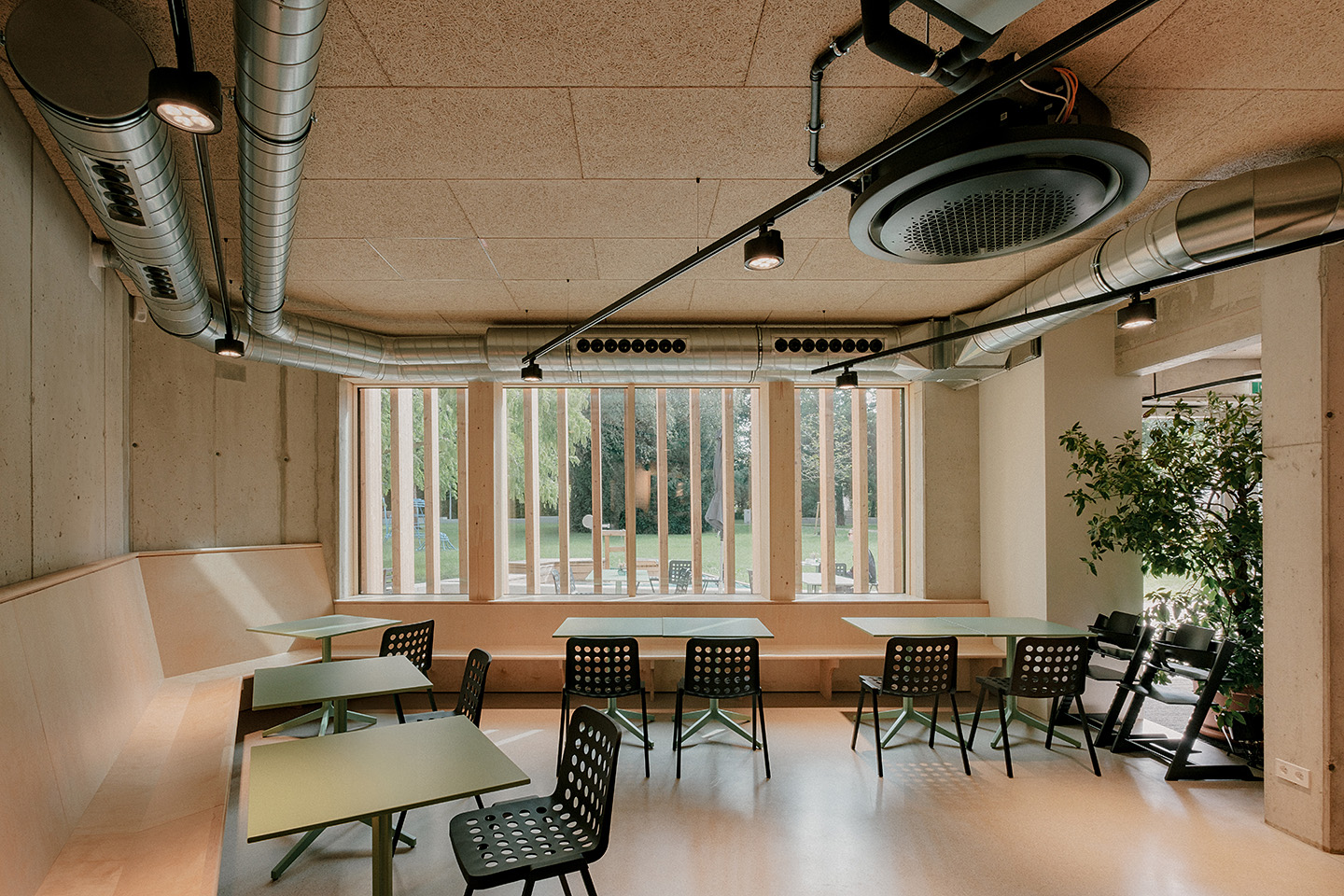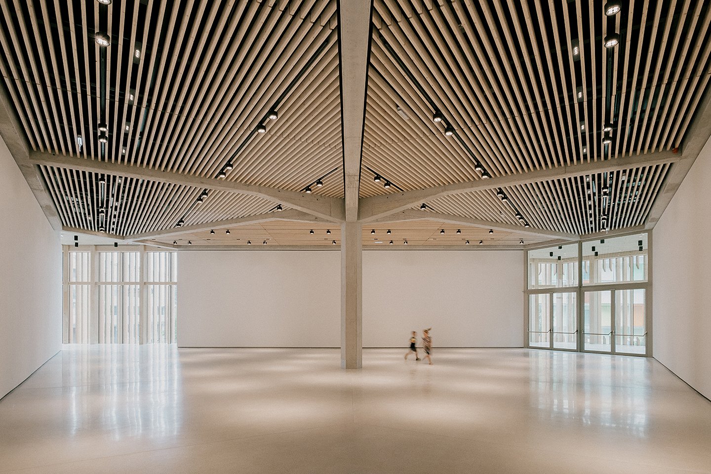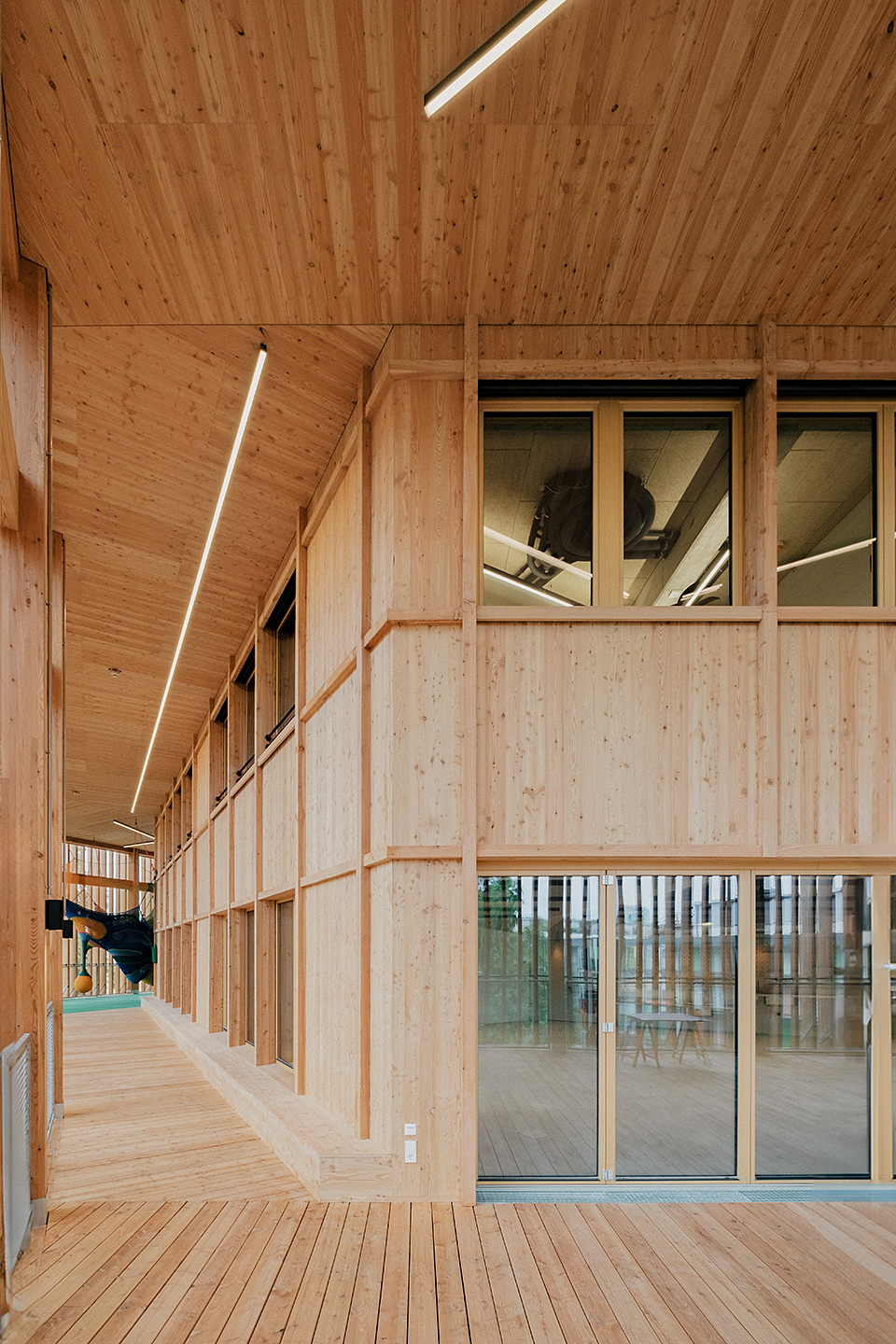 "Das Gebäude im Altoonapark agiert mit seiner prägnanten Form als Landmark auf dem Weg von der Altstadt zum Kulturbezirk in St. Pölten. Das Holztragwerk verleiht dem Bau Leichtigkeit und Offenheit." Schenker Salvi Weber