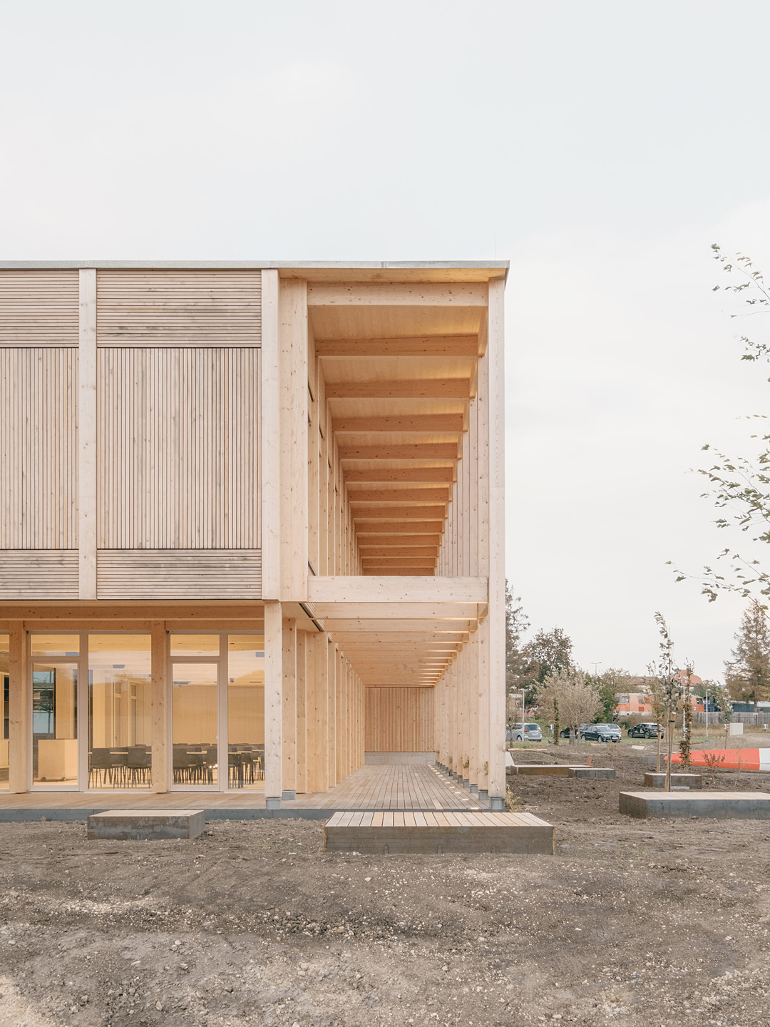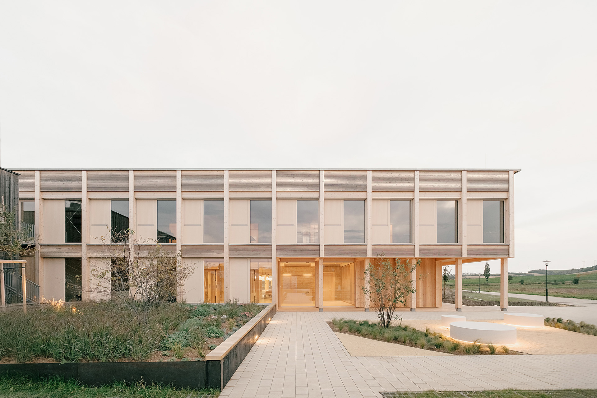 "Der Entwurf löst die Aufgabe indem das bestehende Gebäude in Richtung der Straße um einen zweigeschossigen