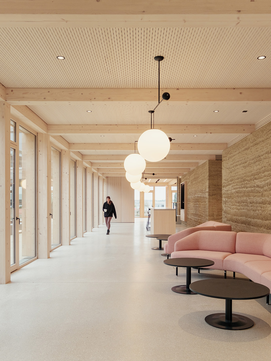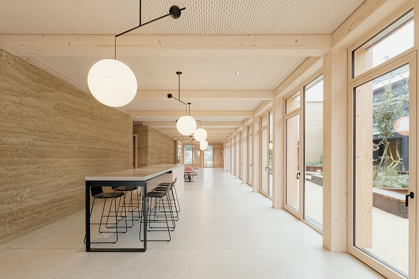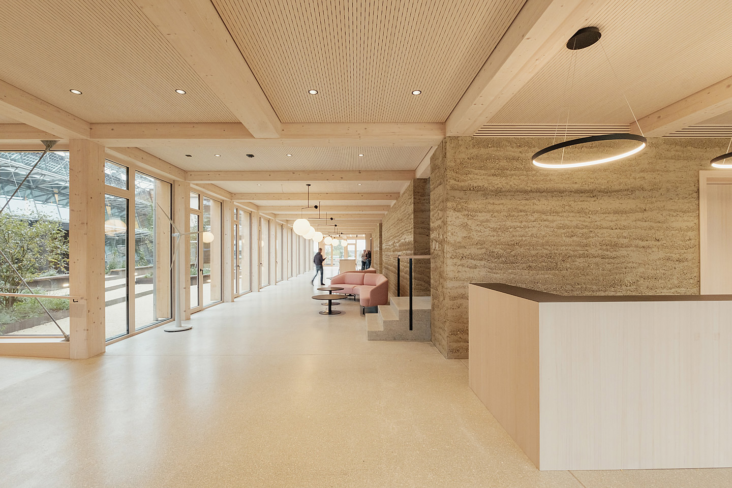 gemeinschaftliches Atrium frei, das als Verbindungsstück und Kommunikationsbereich für Alt- und Neubau