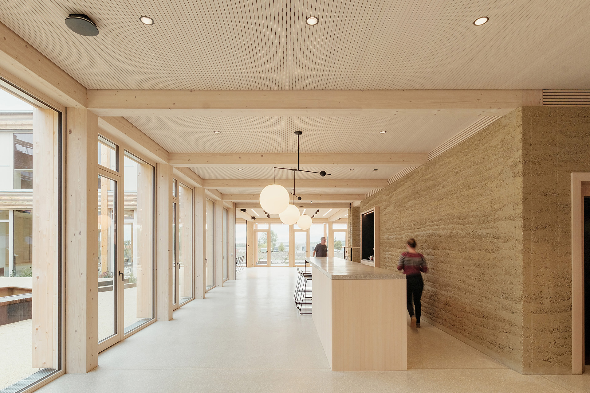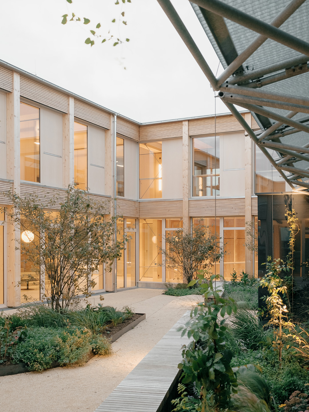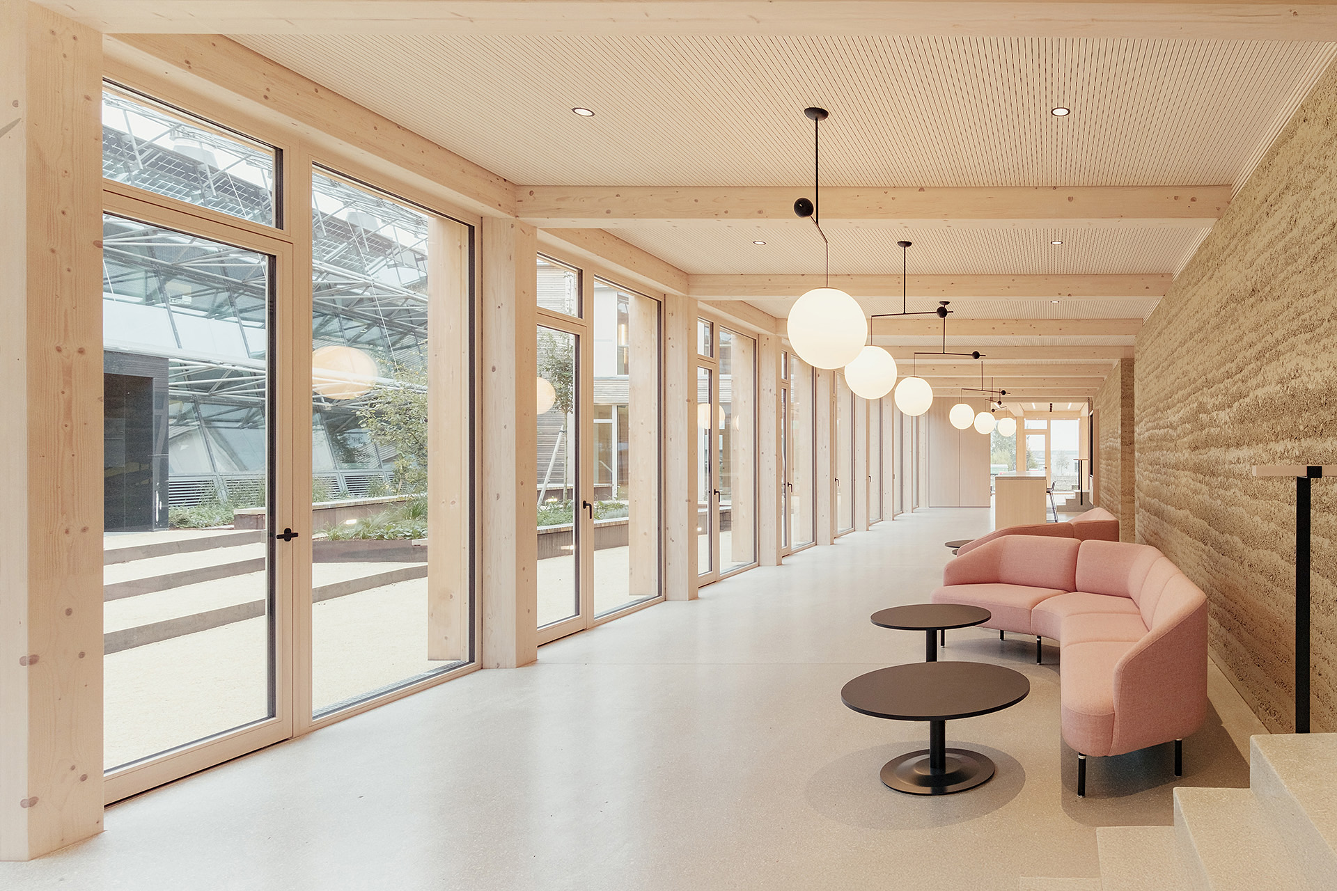 gemeinschaftliches Atrium frei, das als Verbindungsstück und Kommunikationsbereich für Alt- und Neubau
