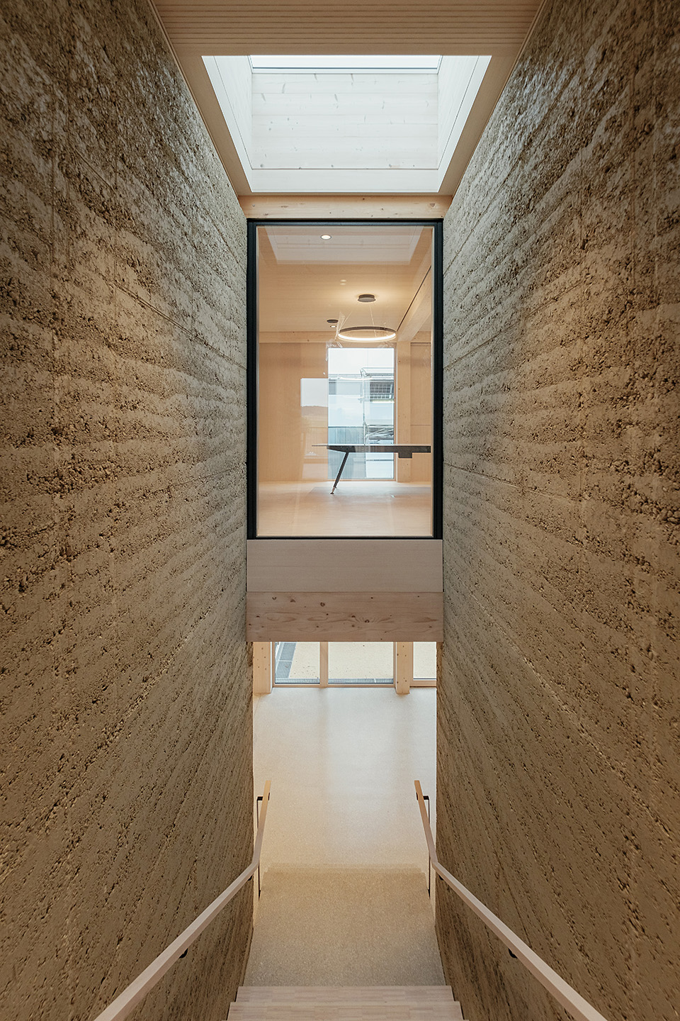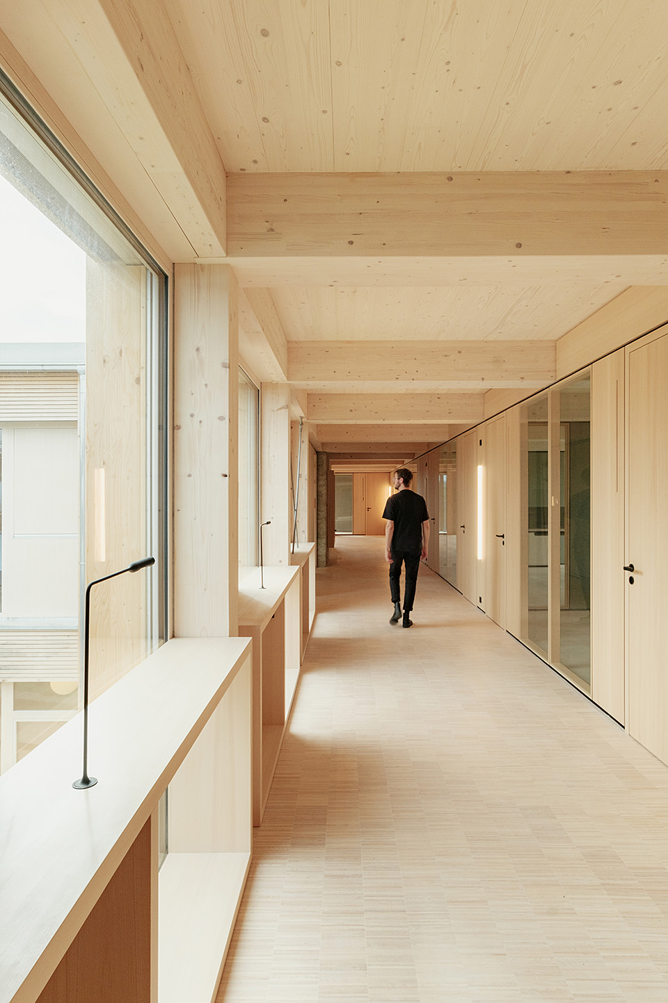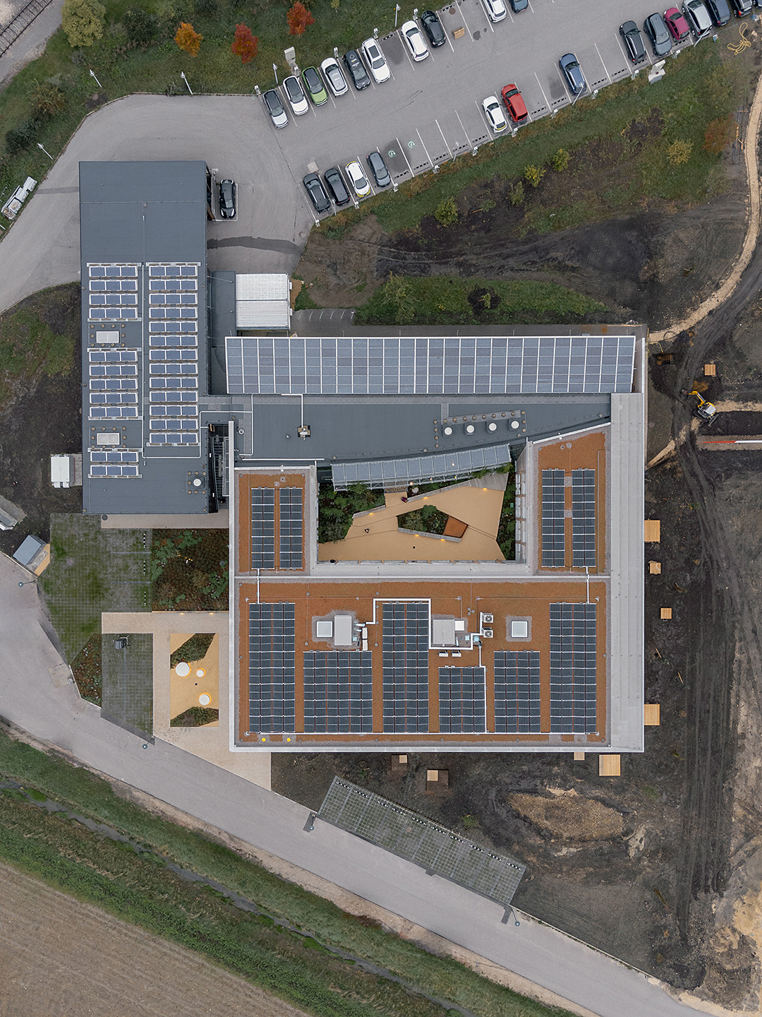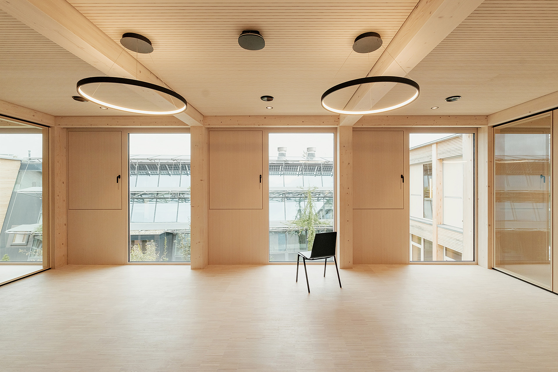 fungiert. Damit wird eine kompakte Kubatur geschaffen, die möglichst wenig in den Bestand eingreift, ihn