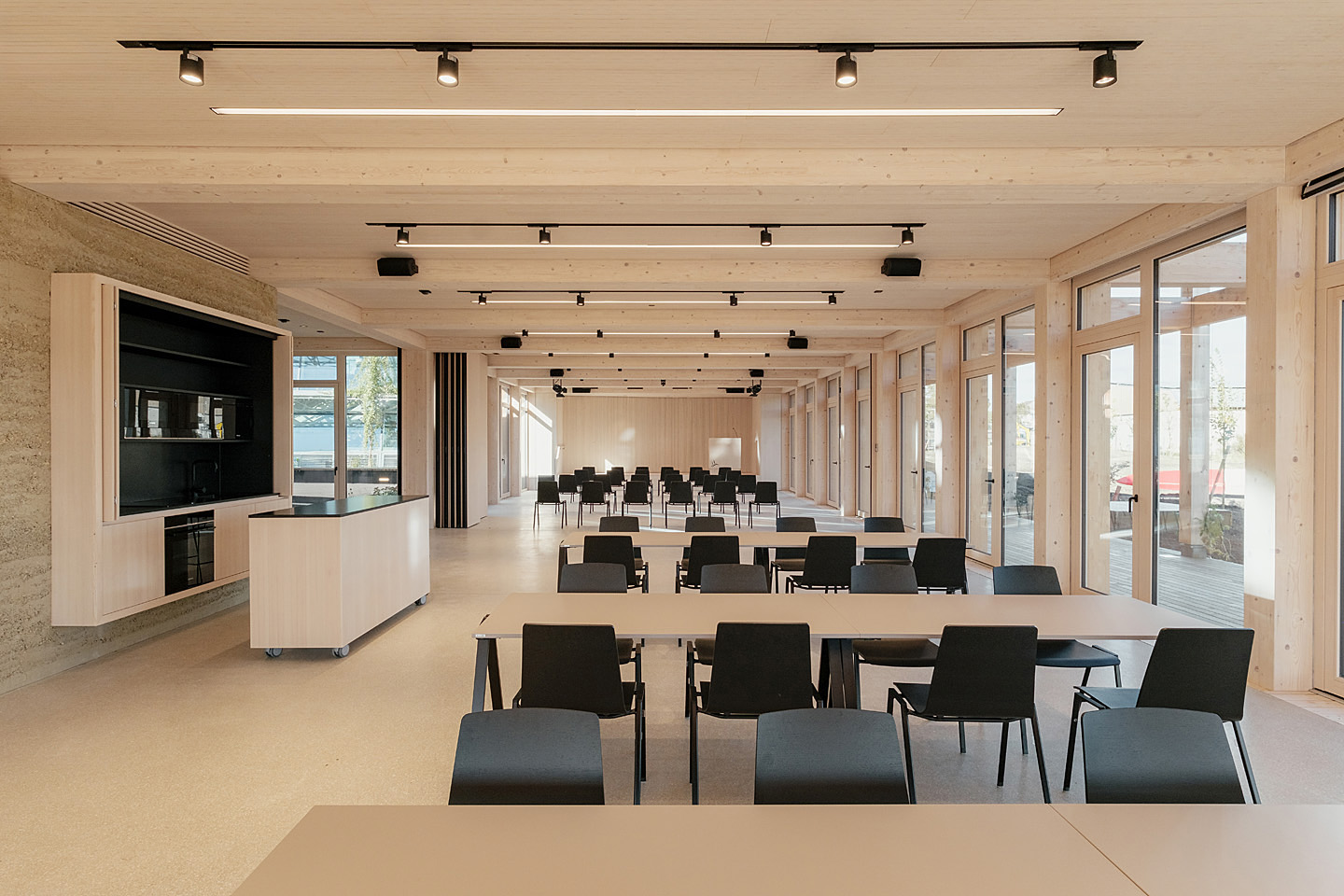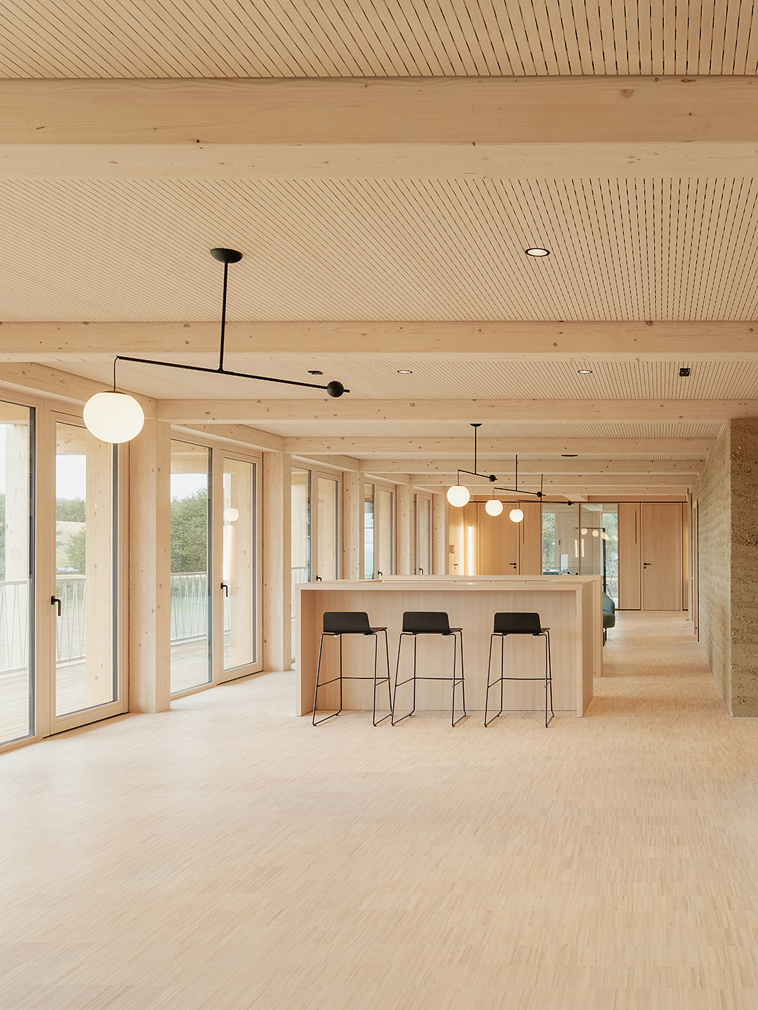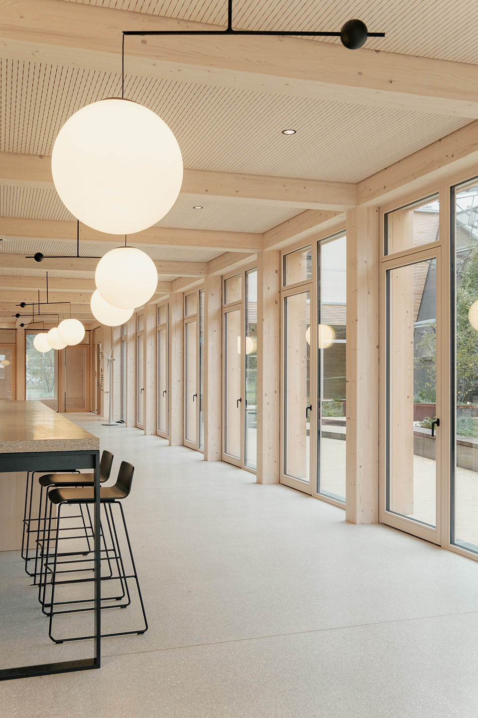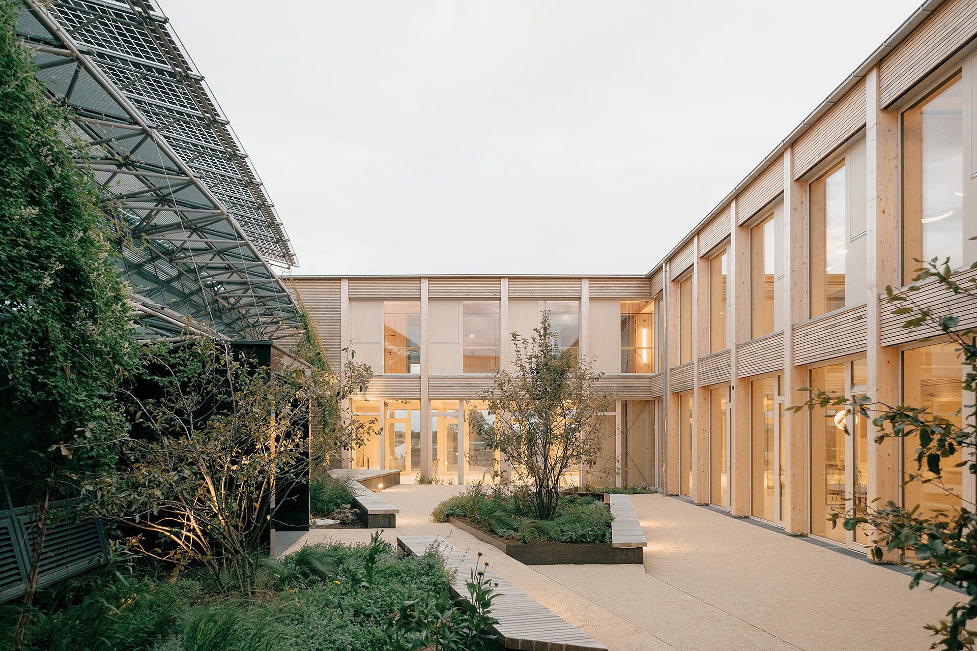 fungiert. Damit wird eine kompakte Kubatur geschaffen, die möglichst wenig in den Bestand eingreift, ihn